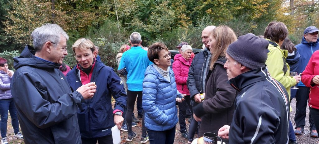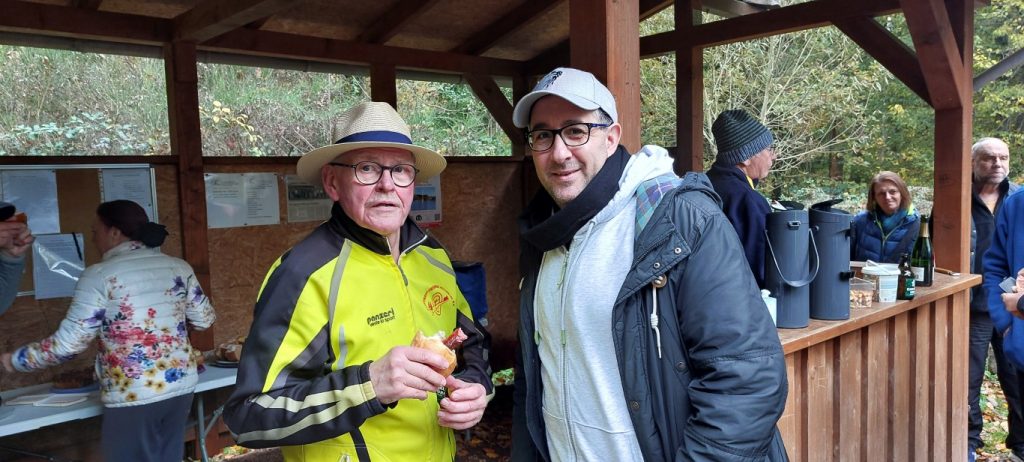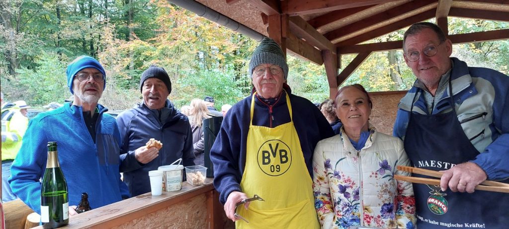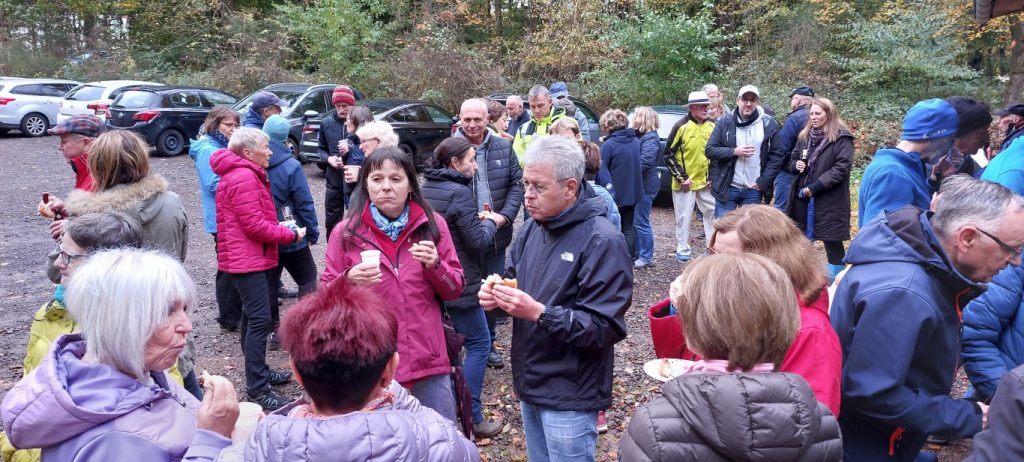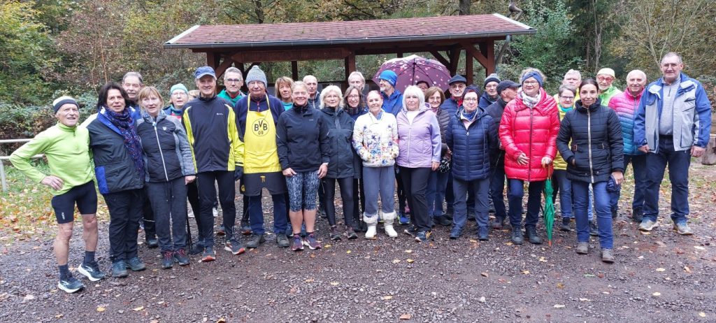 Traditionell am letzten Samstag im Oktober fand am vergangenen Samstag der Saisonausklang der Lauftreff-Freunde Köllertal statt. Man traf sich wie immer am Lauftreff auf dem Parkplatz Am Amelsberg zwischen Köllerbach und Elm. Trotz des zu Beginn eher ungemütlichen Wetters fanden sich etwa 40 Vereinsmitglieder ein, die sich auch nicht davon abbringen ließen, eine Stunde im Wald zu laufen, zu walken oder einen gemütlichen Spaziergang zum Teil mit Regenschirm zu unternehmen. Nach der sportlichen Betätigung kehrte man wieder zum Ausgangspunkt zurück, wo schon Würstchen, Kaffee und Kuchen und andere Getränke auf die Teilnehmer warteten. Kuchen und Kaffee waren von großzügigen Spendern und Spenderinnen zur Verfügung gestellt worden. Helmut Kiefer und Armin Jakob grillten fachmännisch die Würstchen. Weitere Vereinsmitglieder gesellten sich dazu und man stand in Grüppchen zusammen und unterhielt sich noch eine ganze Weile. Wieder einmal wurde deutlich, dass bei den Lauftreff-Freunden nicht nur der Sport sondern auch die Geselligkeit groß geschrieben werden. Saisonausklang bedeutet aber nicht, dass die Lauftreff-Freunde mit ihrem Training aufhören, sondern dass die wichtigsten Wettkämpfe der Saison abgeschlossen sind. Trotzdem gibt es in den nächsten Wochen noch interessante Lauf- und Walkingevents, an denen auch Sportlerinnen und Sportler der Lauftreff-Freunde teilnehmen werden, zum Beispiel den Martinslauf in Losheim, den Nachtwächterlauf in Ottweiler oder den Silversterlauf in Saarbrücken. Über den ganzen Winter wird also fleißig weiter trainiert, um sich einfach fit zu halten oder auch an dem einen oder anderen Wettkampf teilzunehmen. Die Trainingseinheiten finden aber jetzt dienstags, donnerstags und samstags von 16:00 Uhr bis 17:00 Uhr statt, da wegen der früher einsetzenden Dunkelheit später nicht mehr im Wald gelaufen werden kann. Sonntags besteht weiterhin die Möglichkeit, ab 9:00 Uhr in 90 Minuten längere Stecken zu laufen oder zu walken. Vereinsmitglieder der Lauftreff-Freunde Köllertal, die die Trainingsstunden am Nachmittag nicht besuchen können, treffen sich privat zum Lauf- oder Walkingtraining.